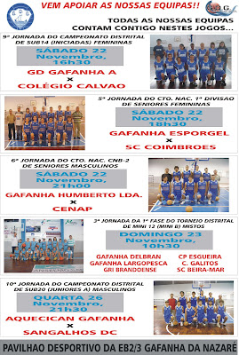 No próximo Domingo, dia 23 de Novembro de 2008, a partir das 10h30, vai decorrer no Pavilhão Desportivo da Gafanha da Nazaré, a 3ª Jornada da 1ª Fase do Torneio Distrital de Minis 12 Masculinos e Femininos da Associação de Basquetebol de Aveiro, com a participação das 8 seguintes equipas: