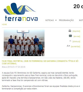 GD GAFANHA, CAMPEÃO DISTRITAL DE SUB16 FEMININAS 2009/2010