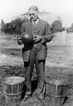A turma de Naismith jogou o primeiro jogo de basket ball (duas palavras) com uma bola de futebol e dois cestos de pêssegos pregados a um balcão/varanda a 3,05 metros acima do chão. A turma foi dividida em duas equipas de 9 jogadores. O ginásio tinha as medidas de somente: 16 x 11 m. (actualmente são: 28 x 15 m.). O resultado final foi de 1-0. William Chase marcou o ponto solitário a 8 metros — um tiro de meio do recinto naquele ginásio pequeno.