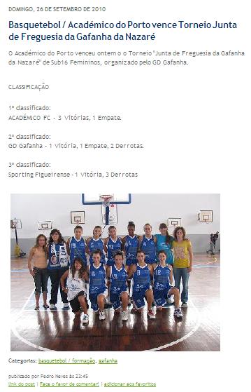 Neste Domingo, dia 26 de Setembro de 2010, decorreu no Pavilhão Desportivo da Gafanha da Nazaré o Torneio "Pizzaria Brasão" de Sub14 Femininos, com a participação das equipas do GICA e do Académico do Porto, assim como a equipa anfitriã GAFANHA PIZZARIA BRASÃO.