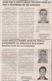 A ex-atleta junior do GD Gafanha, Joana Cunha (1992), vai continuar a colaborar na próxima época como monitora no Grupo de Babybasket, orientado para crianças de 3, 4 e 5 anos.