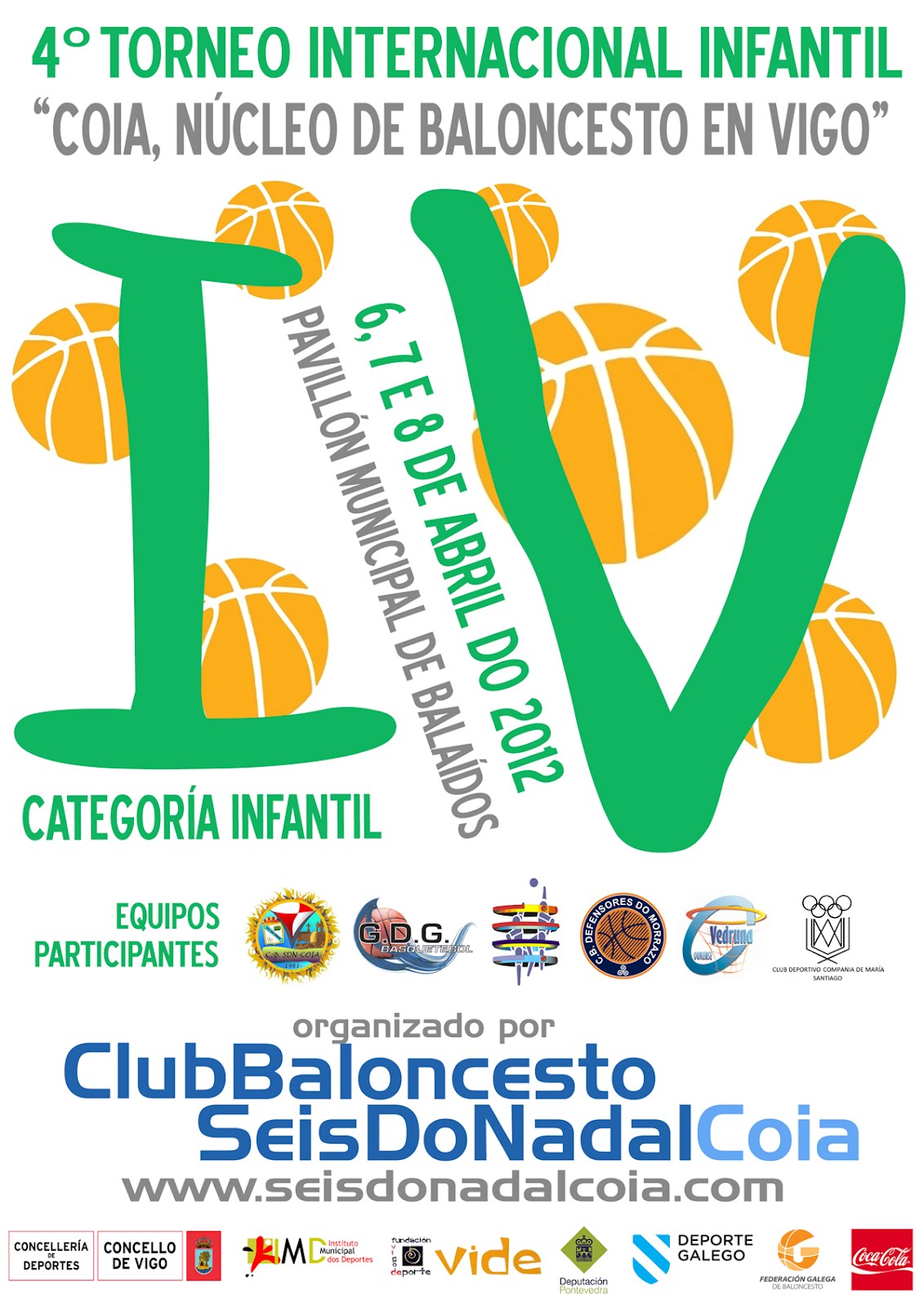 A equipa "A" de Sub14 Masculinos, Gafanha Argentea, e a quipa de Sub14 Femininos, Gafanha Aires, vão participar no 4º Torneio Infantil Internacional "Coia, Núcleo de Baloncesto en Vigo", prova organizada pelo Club Baloncesto Seis do Nadal-Coia em Vigo (Espanha), nos dias 6, 7 e 8 de Abril de 2012, sendo que além dos jogos marcados na Sexta-feira e no Sábado à tarde, as nossas equipas vão também disputar na Sexta-feira dia 6, às 10h00 (Sub14 A) e as 12h00 (Sub14 B), no Col. Seis do Nadal, um jogo-treino frente a outros adversários, assim como as Sub14 Femininas no Sábado dia 7 de manhã.