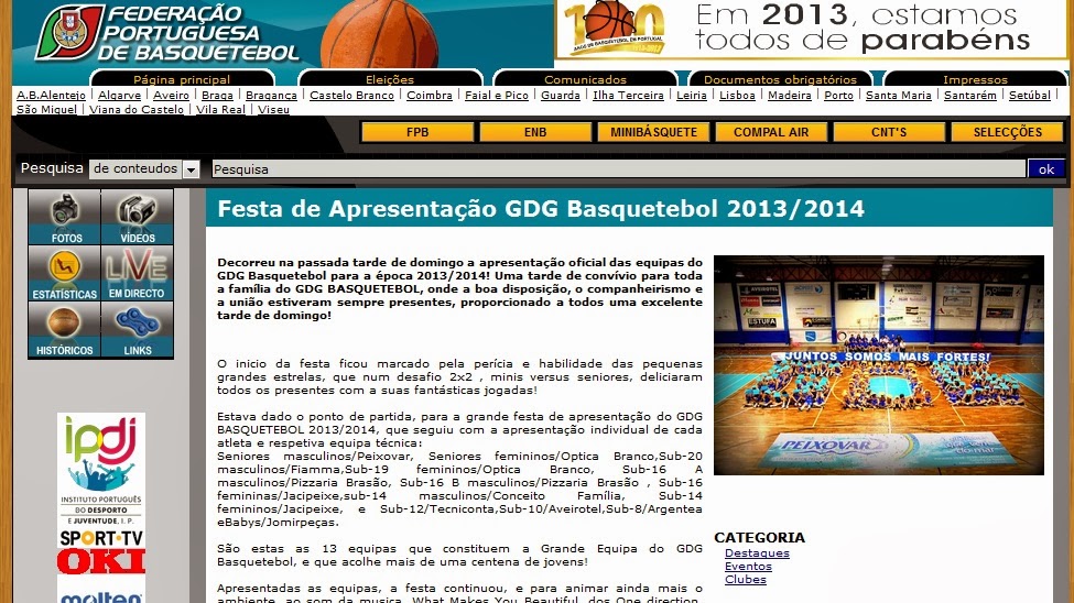 A festa de apresentação da grande equipa do GDG BASQUETEBOL, foi novamente noticia de destaque  na comunicação social.