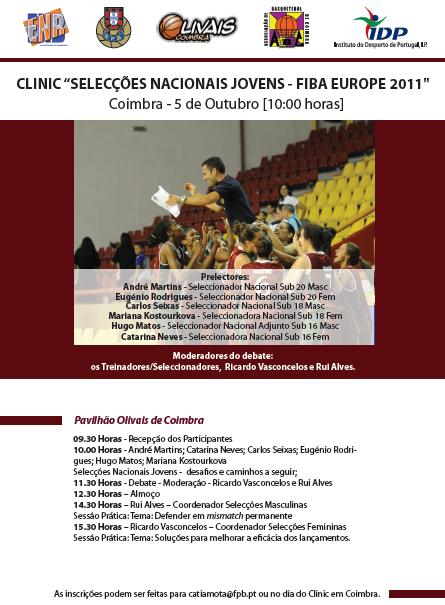 CLINIC SELECÇÕES NACIONAIS JOVENS - FIBA EUROPE 2011, DIA 5 DE OUTUBRO EM COIMBRA