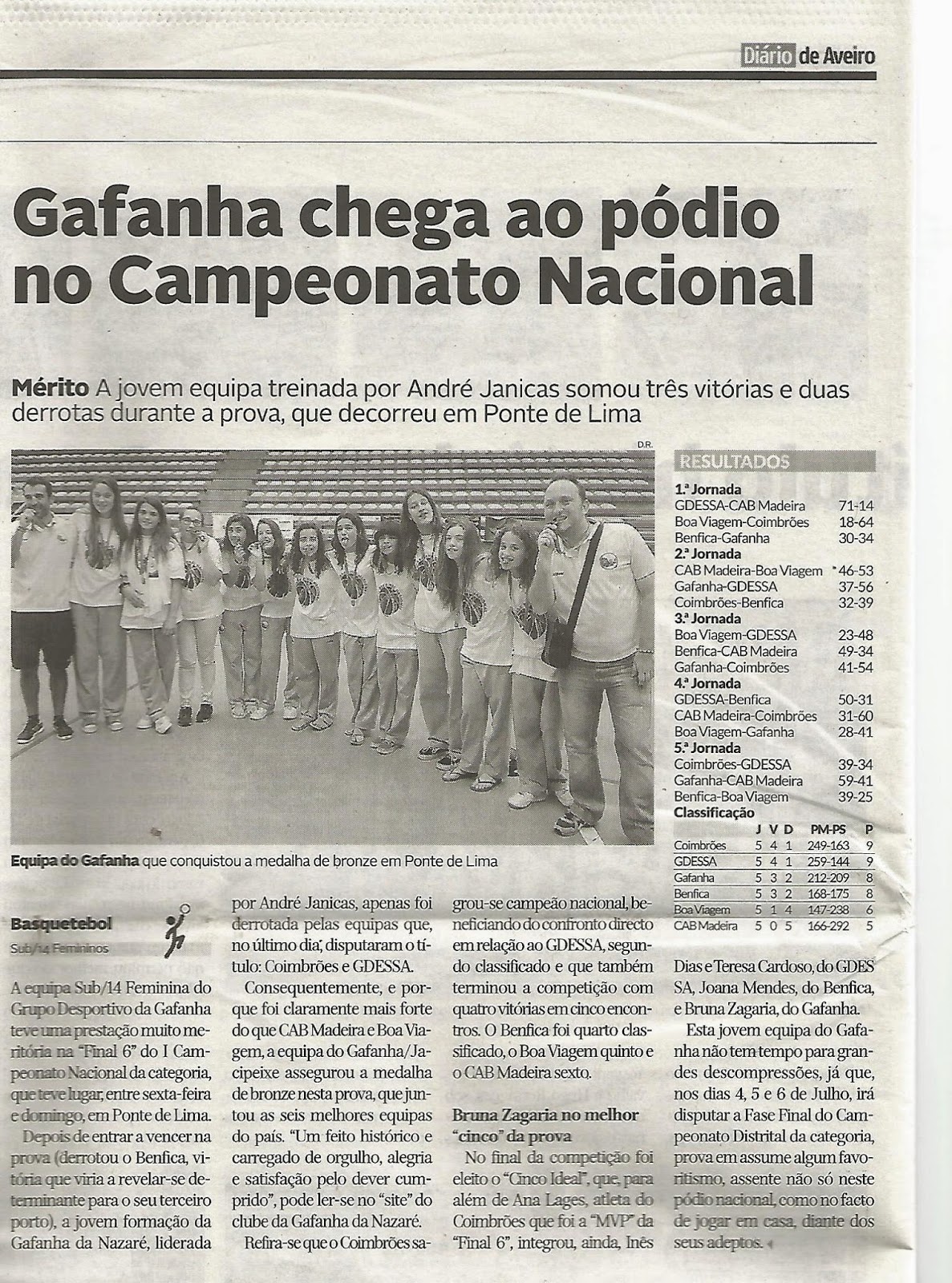 Para a história fica também o destaque e a notícia do Diário de Aveiro sobre esta 28ª Fase Final Nacional Sub 16 Femininas.
