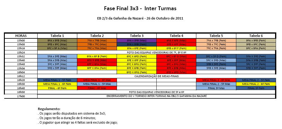 V TORNEIO INTER-TURMAS NA EB2/3 GAF. NAZARÉ - 26 OUTUBRO 2011